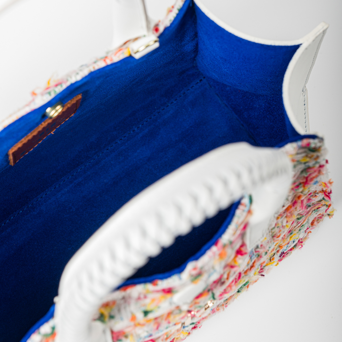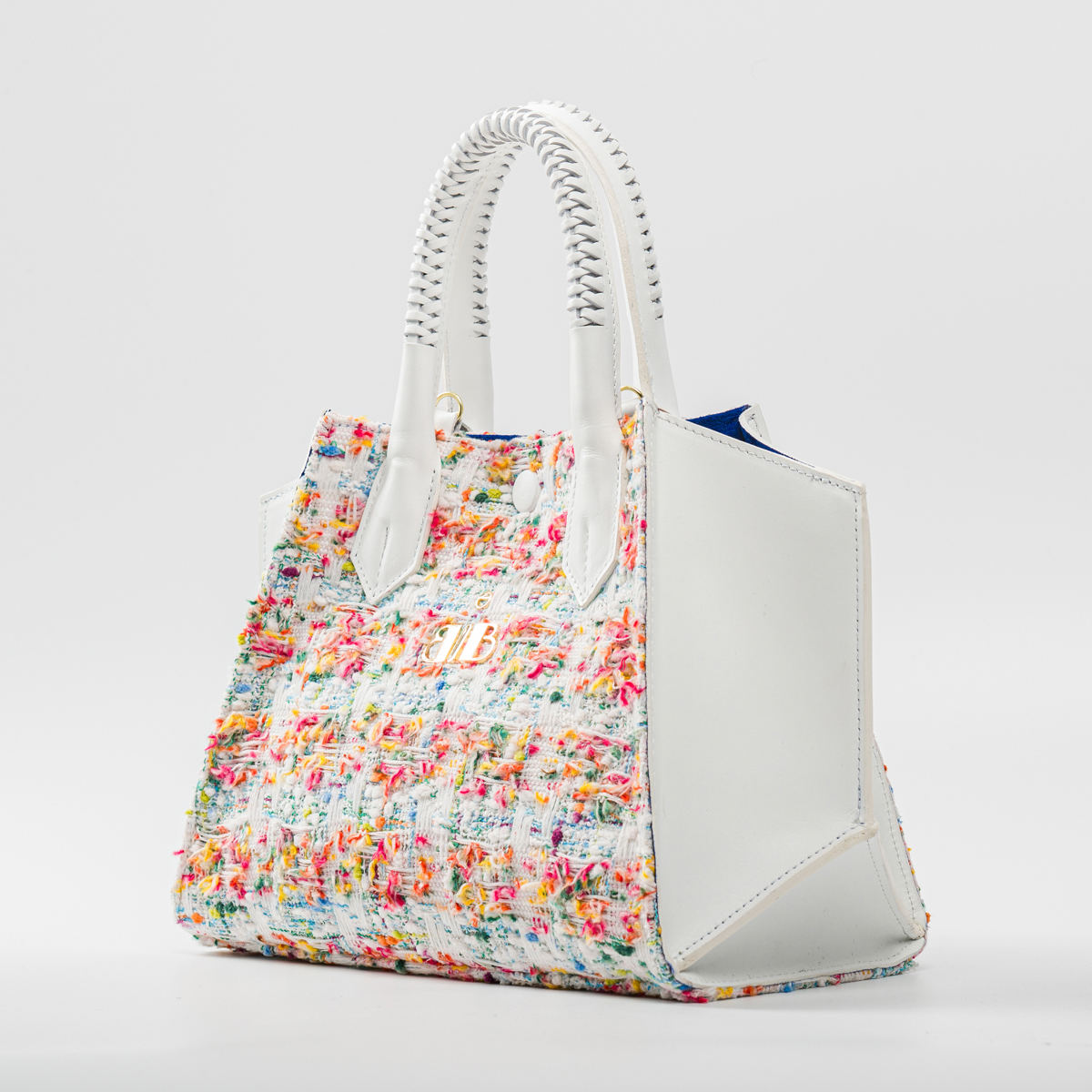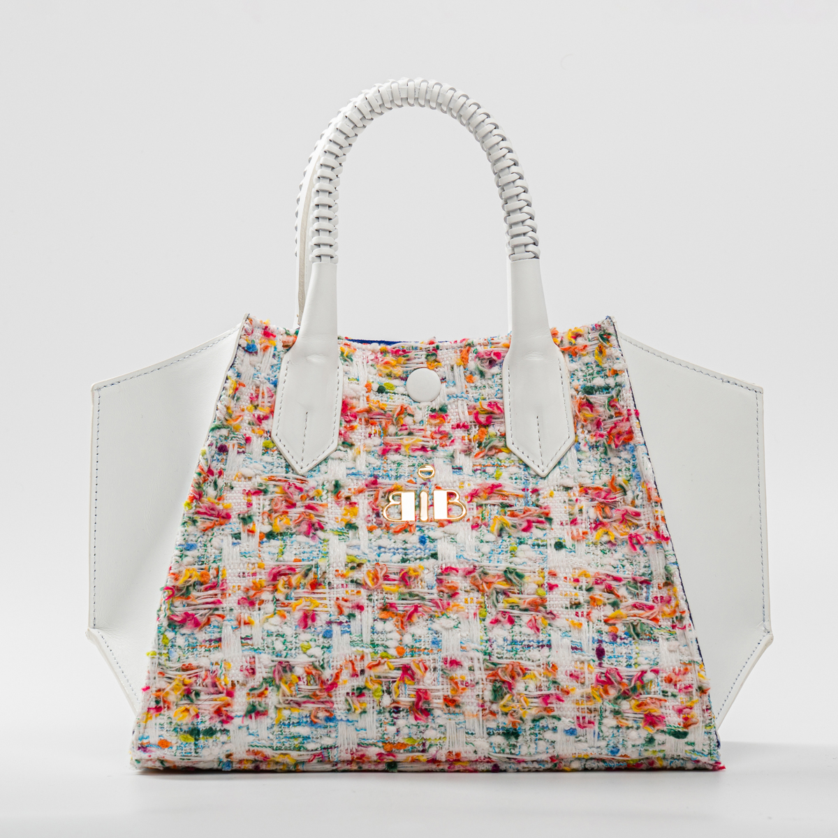 The "Alba" Small Top Handle Handbag in Woven Wool and White Leather radiates elegance and femininity. Inspired by bright futures, this new addition to the BABO line is essential for every woman's wardrobe.